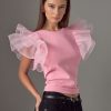- Organza ruffled short sleeves