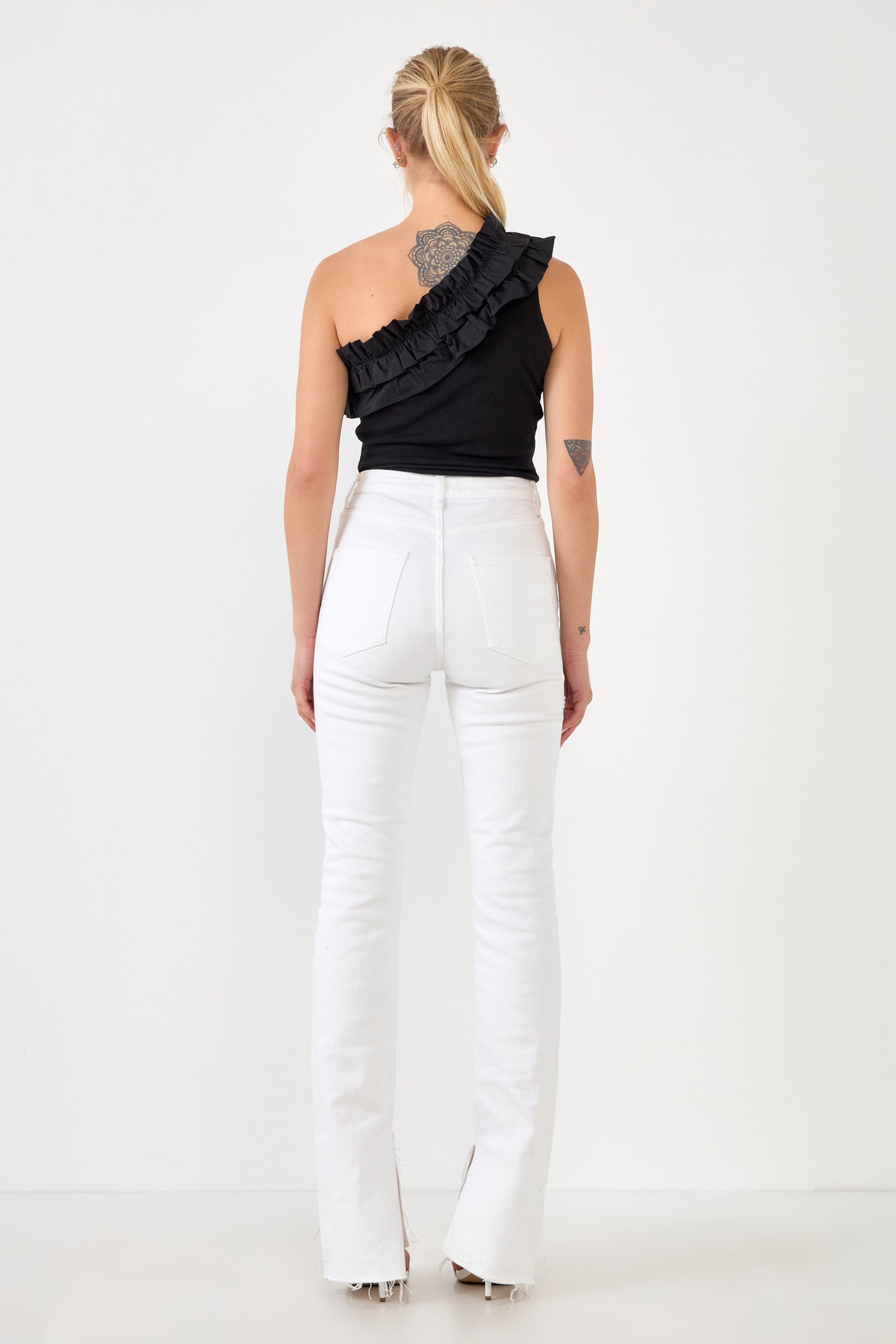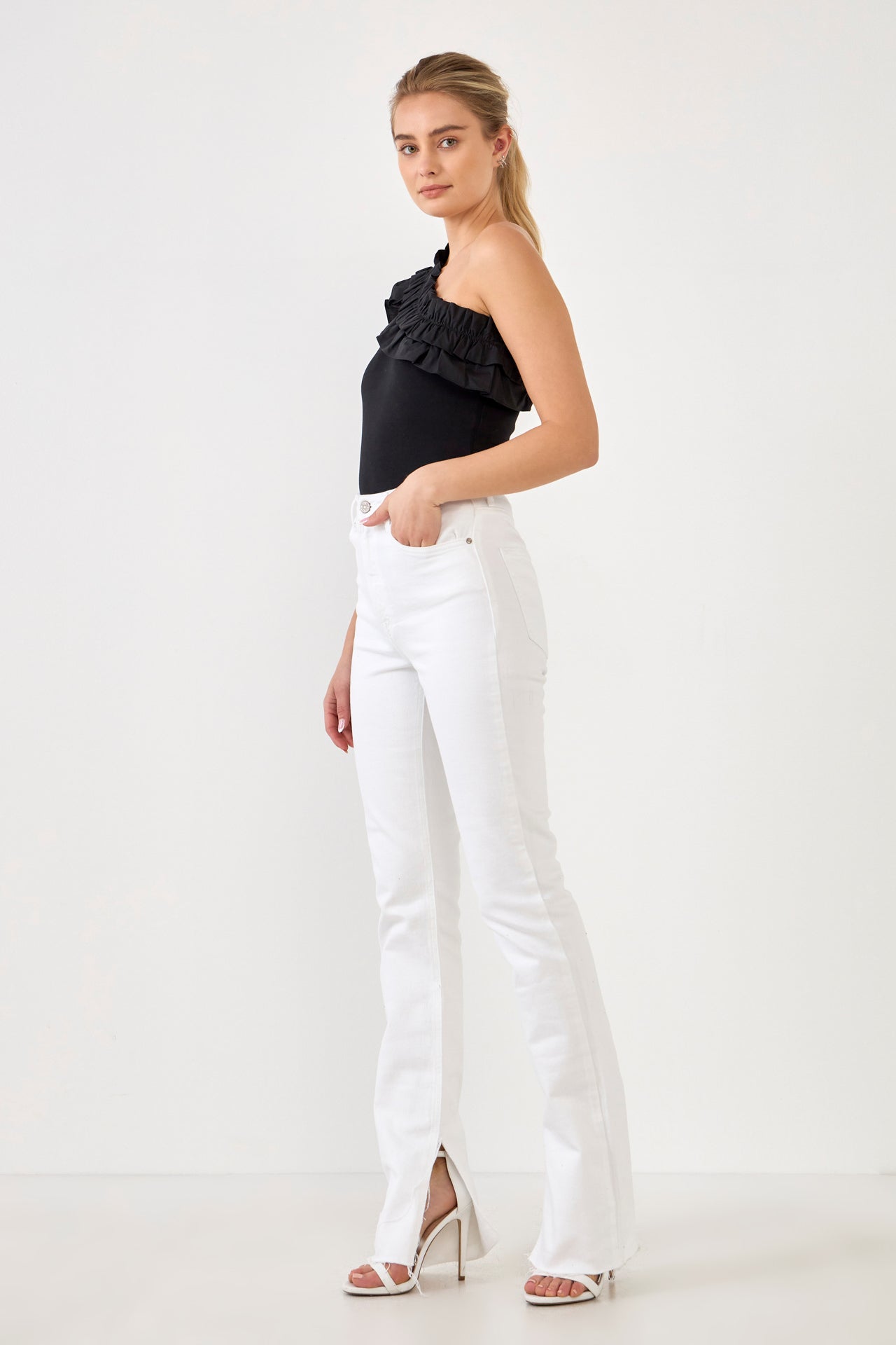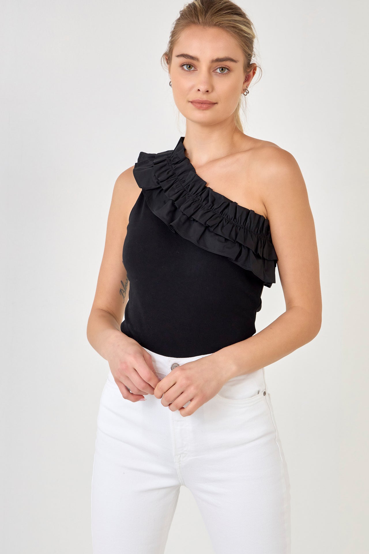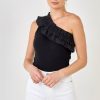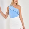 Endless Rose Women’s Ruffled Asymmetrical Bodysuit | Green|orange|black|powder Blue|white|pink