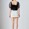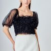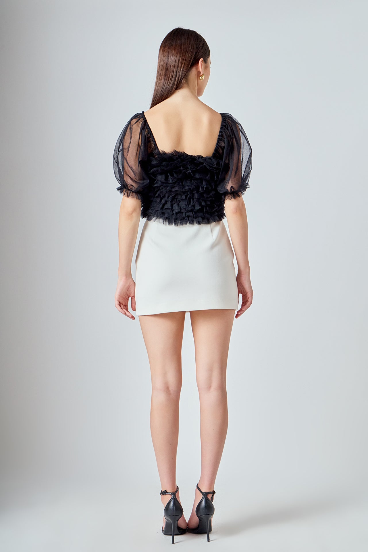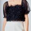 This elegant Ruffled Puff Sleeve Tulle Top features a square neckline for a sophisticated look. Crafted with ruffled short puff sleeves this cropped length top will be sure to make any ensemble shine. Its airy silhouette makes this top perfect for any special occasion.