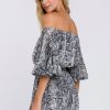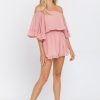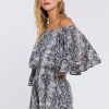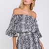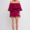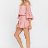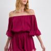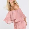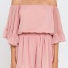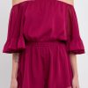This ruffled sleeve romper is perfect for a day of fun in the sun. The off-the-shoulder silhouette and ruffle sleeves add a touch of femininity to this casual piece. The elastic at the waist ensures a comfortable and flattering fit. Made from a solid chiffon fabrication this romper is sure to become your new go-to piece for any casual occasion.