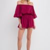 This ruffled sleeve romper is perfect for a day of fun in the sun. The off-the-shoulder silhouette and ruffle sleeves add a touch of femininity to this casual piece. The elastic at the waist ensures a comfortable and flattering fit. Made from a solid chiffon fabrication this romper is sure to become your new go-to piece for any casual occasion.