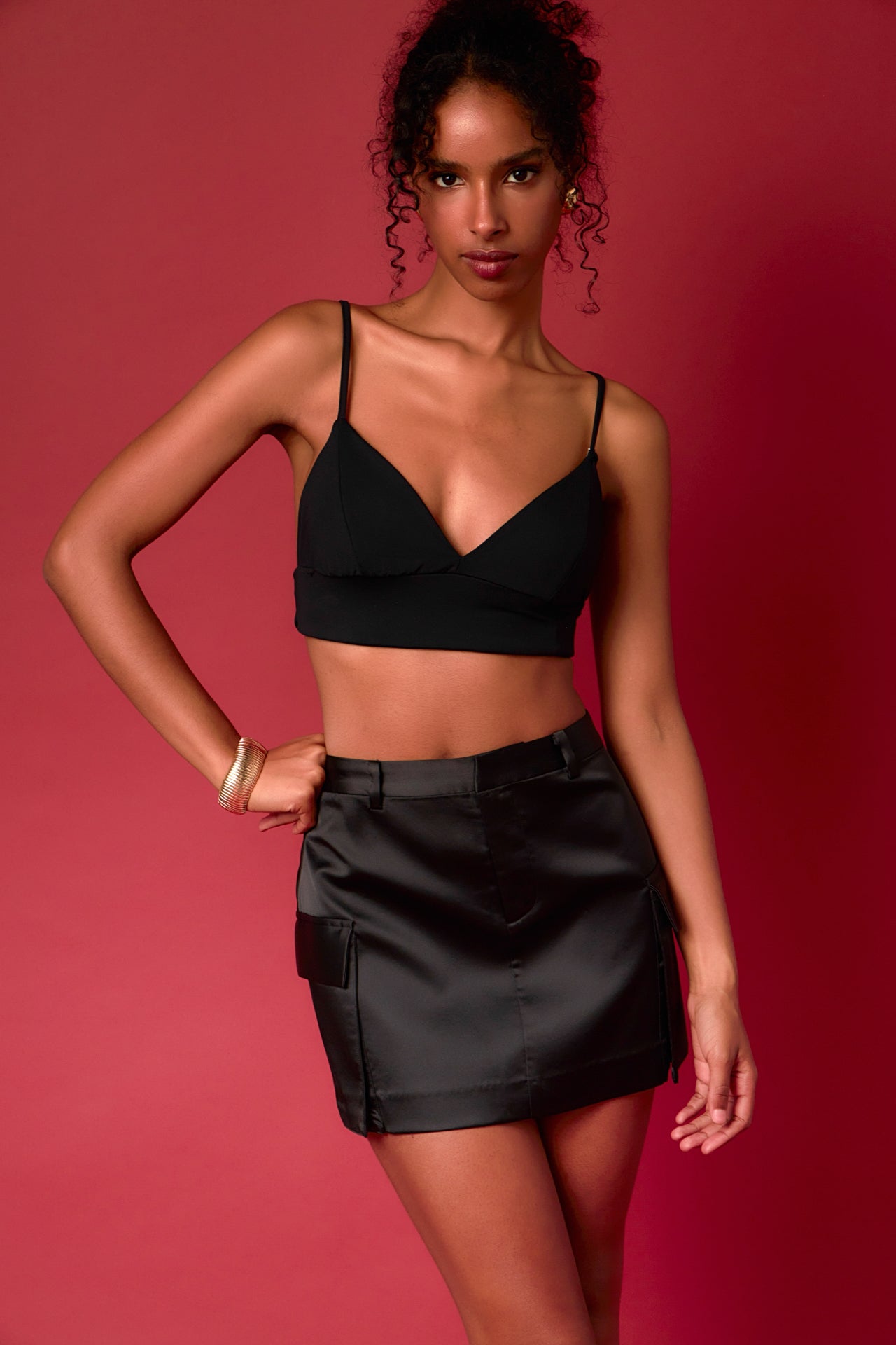 Endless Rose Women’s Satin Cargo Mini Skirt | Black