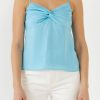 Endless Rose Women’s Satin Effect Knotted Top | Sky Blue