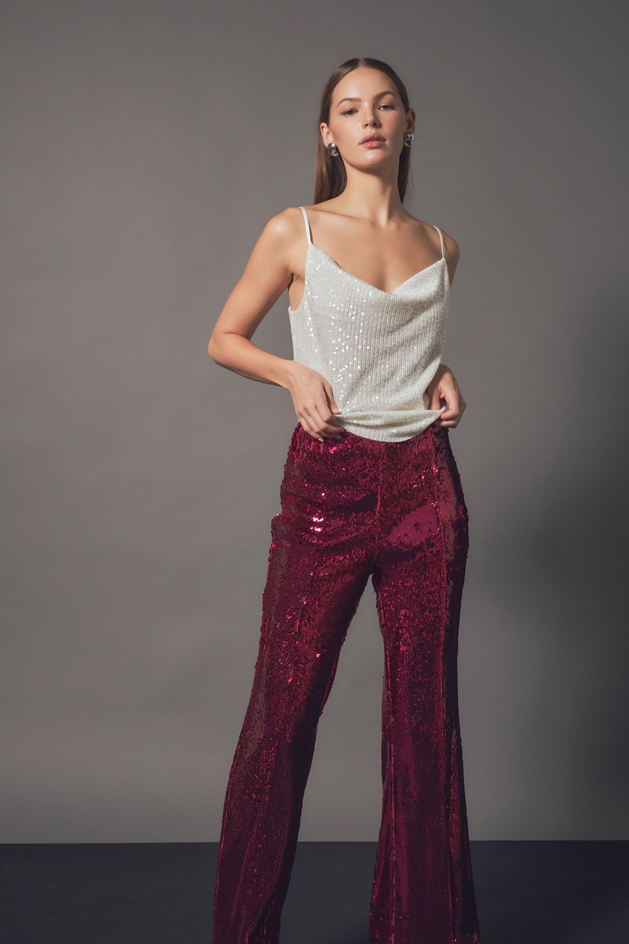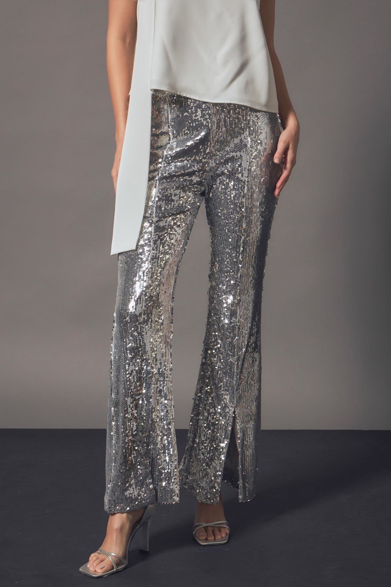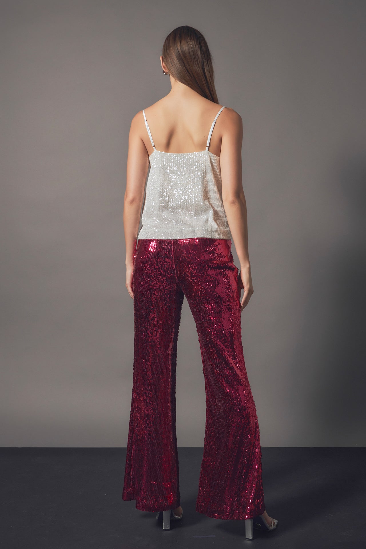 Endless Rose Women’s Sequin Flare Pants | Silver|fuchsia|black