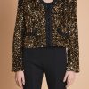 Sparkle up your wardrobe with our stunning Sequin Jacket! This eye-catching jacket features dazzling sequins, adding a touch of glamour to any outfit. With elevated shoulder pads and long sleeves, it adds structure and sophistication. The tape trim details along the edges add a touch of modernity to this classic piece. Perfect for any occasion, our Sequin Jacket is a must-have for your wardrobe. Shine bright and stand out from the crowd with this statement piece.