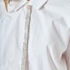 Crafted from airy, lightweight cotton, this button-up shirt offers a perfect balance of comfort and polish. Designed with a slightly oversized fit, it drapes effortlessly on the body for a relaxed yet refined silhouette. The standout detail is the placket, intricately adorned with shimmering sequins and delicate beadwork, adding a subtle touch of glamour to this classic piece. Easy to style and endlessly versatile, this shirt can be worn tucked into tailored trousers for an elevated look or left loose over denim for a chic, effortless vibe. A wardrobe essential with a sophisticated twist.