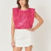 Go glam with this Sequin Shoulder Pad Top. Made of sequins, this top is perfect for all your favorite occasions. You can even pair this sequin top with trousers for a dazzling work outfit. Put on your favorite pair of jeans or high-waisted pants and you’re ready to party!