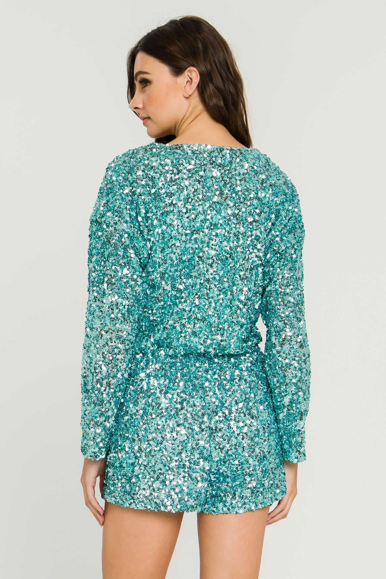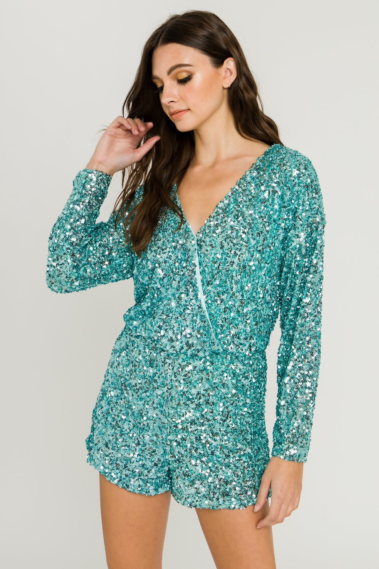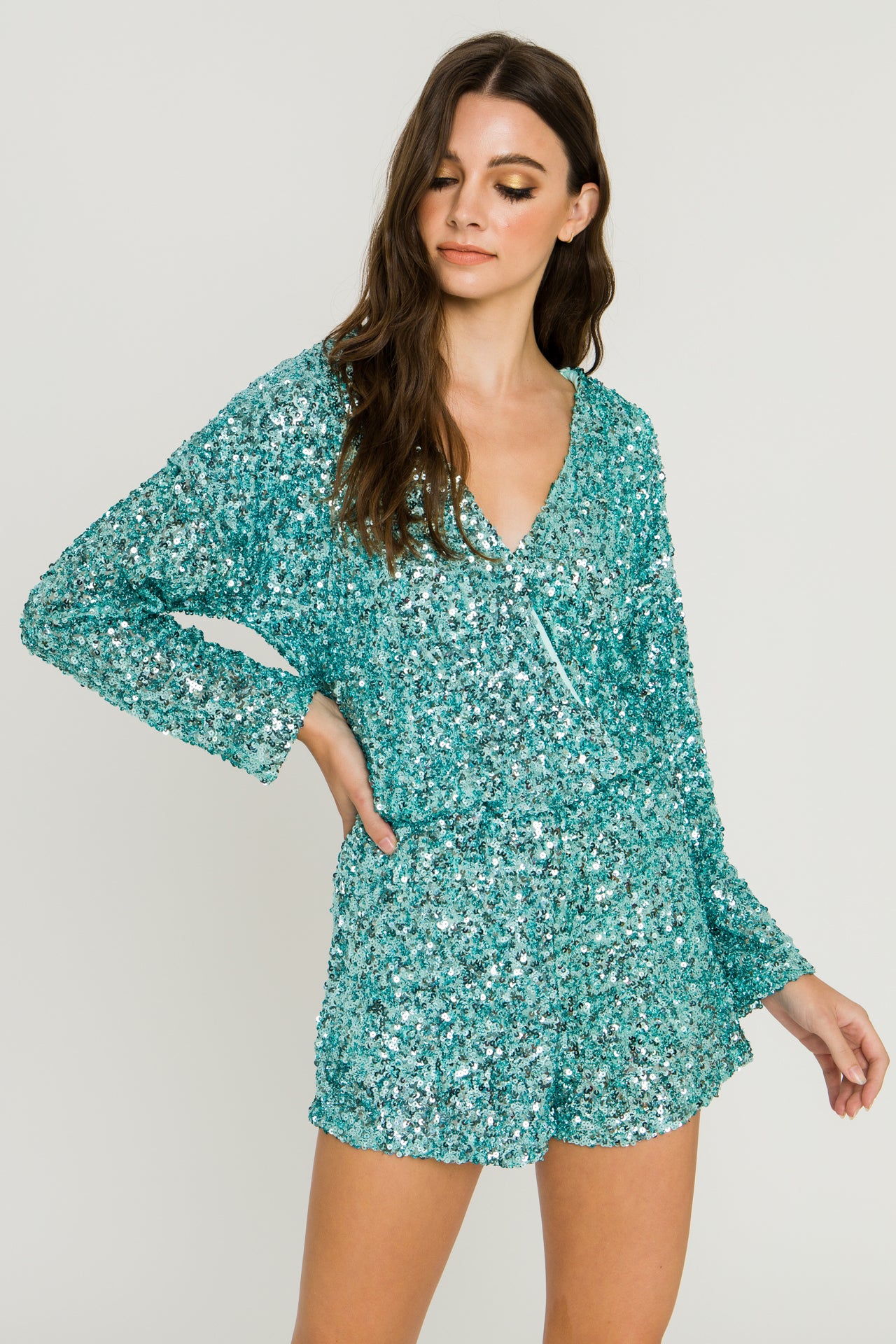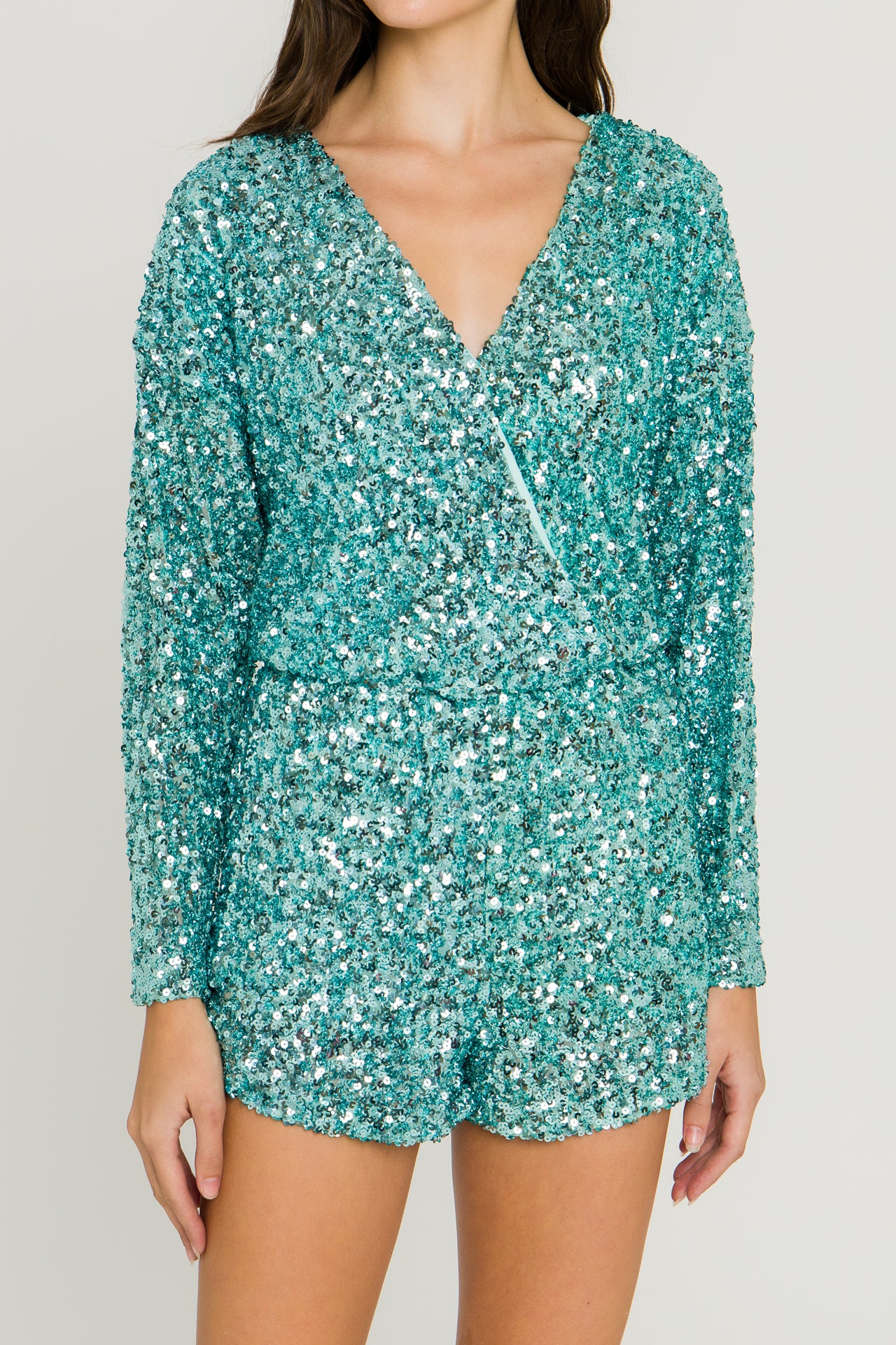 Endless Rose Women’s Sequin Wrap Romper | Pink|blue