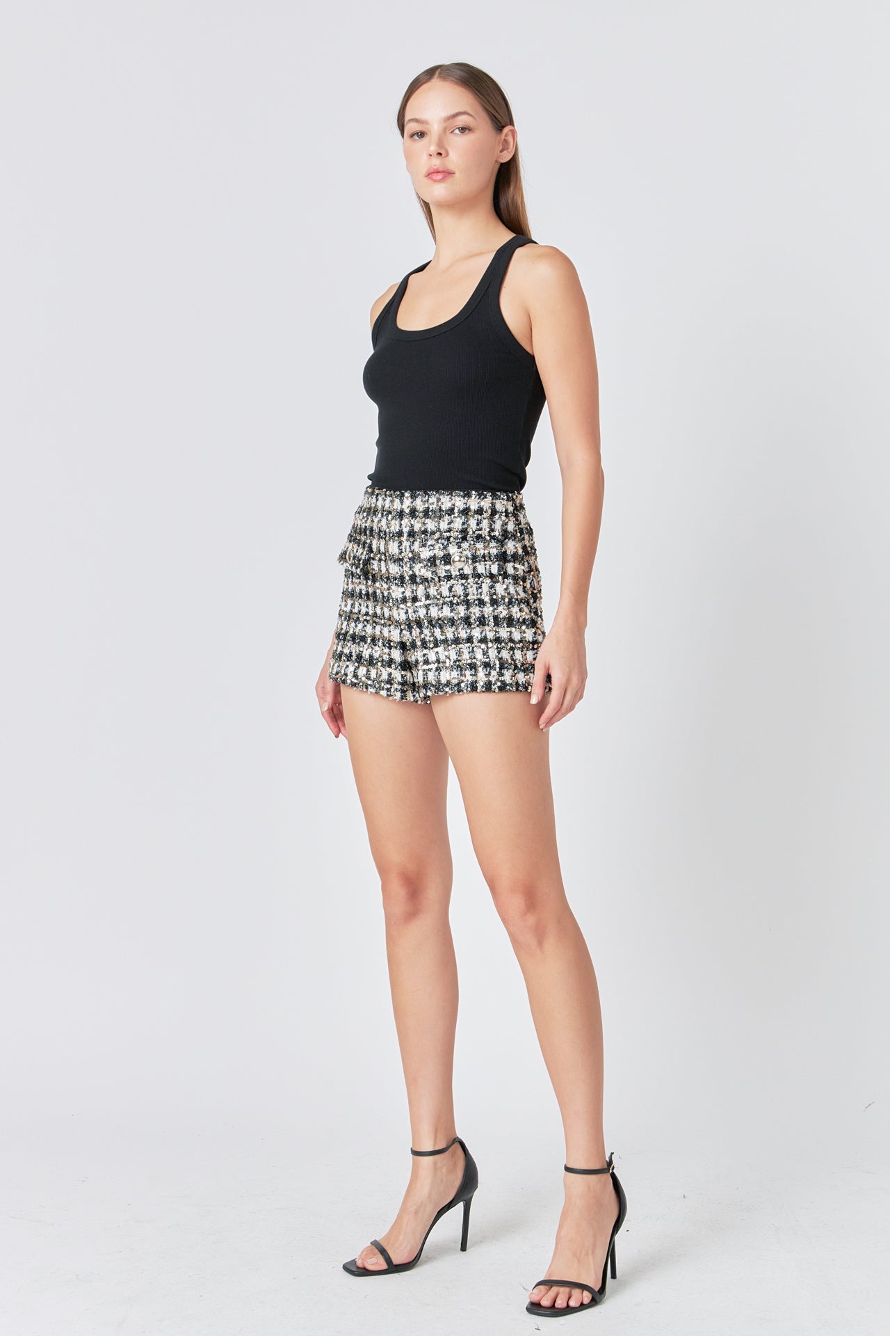 Endless Rose Women’s Sequins Check Shorts | Black & White