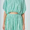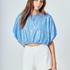 Endless Rose Women’s Sequins Cropped Puff Top | Green|blue|black|ivory|pink