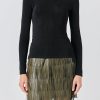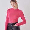 Endless Rose Women’s Sheen Stretch Long Sleeve Top | Black|silver|fuchsia