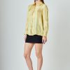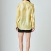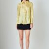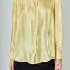 Classic shirt details like buttoned cuffs a curved hemline and center-front buttons make up this Shiny Dress Shirt. The iridescent slightly sheer fabric elevates this wardrobe staple.