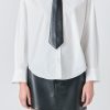 Introducing our stylish Shirt with Faux Leather Necktie the top you need to elevate your wardrobe game! This versatile piece features a trendy and eye-catching necktie made of faux leather adding a touch of edginess to your overall look. The front button down and long sleeves give it a classic and timeless appeal while the collared design adds a touch of sophistication. This shirt is perfect for any occasion whether it’s a day at the office or a night out on the town. Get ready to turn heads and make a bold fashion statement with our Shirt with Faux Leather Necktie. Shop now and upgrade your style