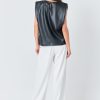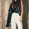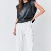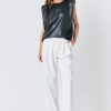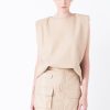 Endless Rose Women’s Shoulder Padded Faux Leather Top | Black|taupe