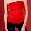 Look chic and stylish in this Strapless Satin Top. The luxe satin fabric and center back invisible zipper closure create an ultra-flattering fit. To ensure your top stays put silicone tapes have been included at the neckline. Show off your curves and flaunt your look with this stylish and modern top.