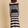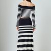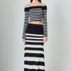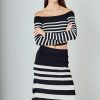 Step into style with our Striped Midi Skirt. The flattering fit and flare silhouette delivers comfort and definition, while the knit fabric offers a soft and lightweight feel. Its midi length adds a touch of sophistication, perfect for both casual and formal occasions. With classic stripes that add a timeless charm to your wardrobe, this skirt is versatile and easy to style. Shop now and make a fashion statement with ease.