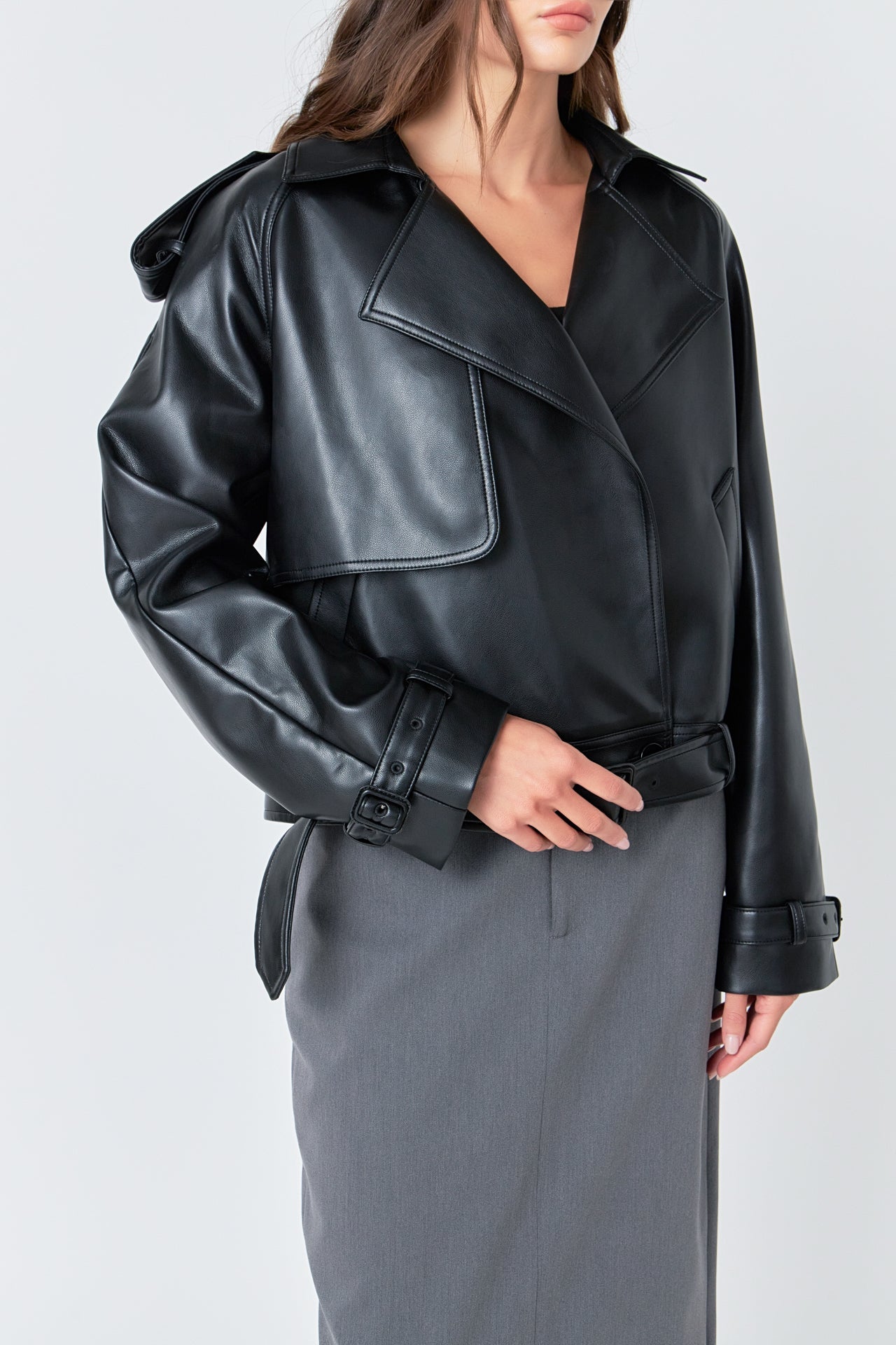 Endless Rose Women’s Trench Short Pu Jacket | Black