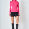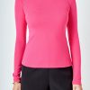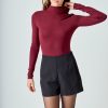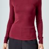 A fitted bodice and long sleeves make this top perfect for chilly weather. The turtleneck provides extra coverage and warmth. The stretchy knit fabric is comfortable and moves with you. This top is sure to become a cold-weather favorite.