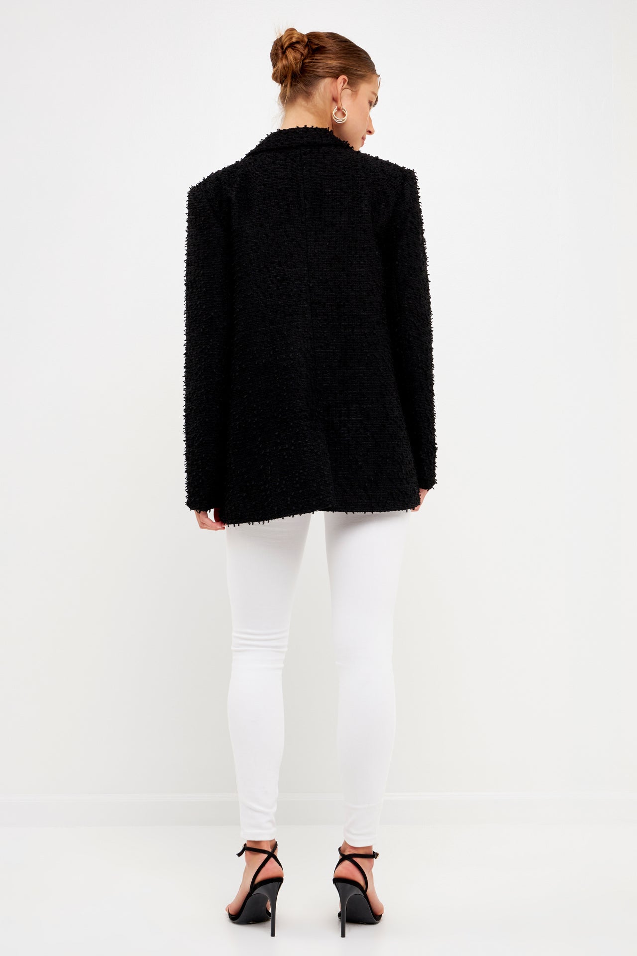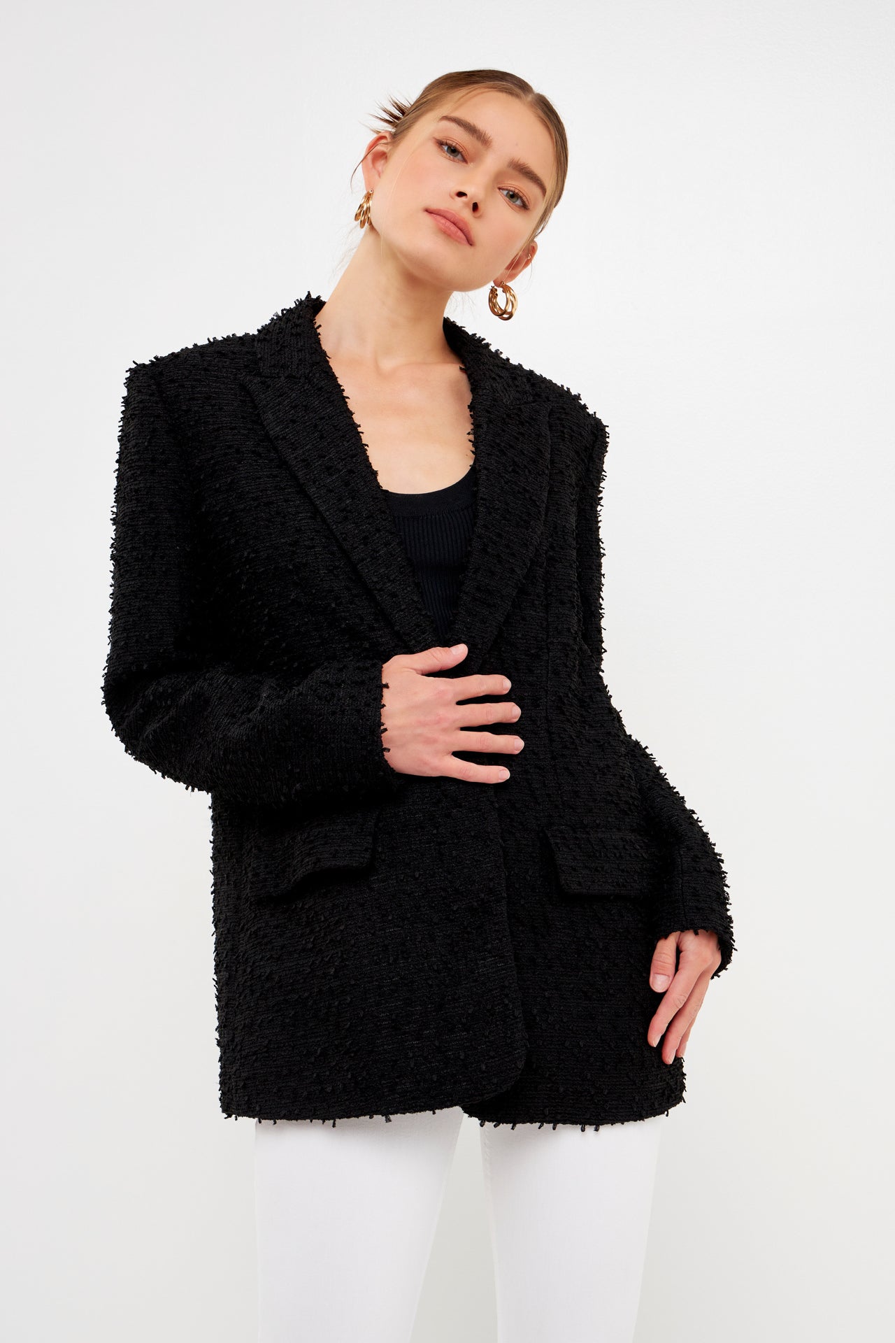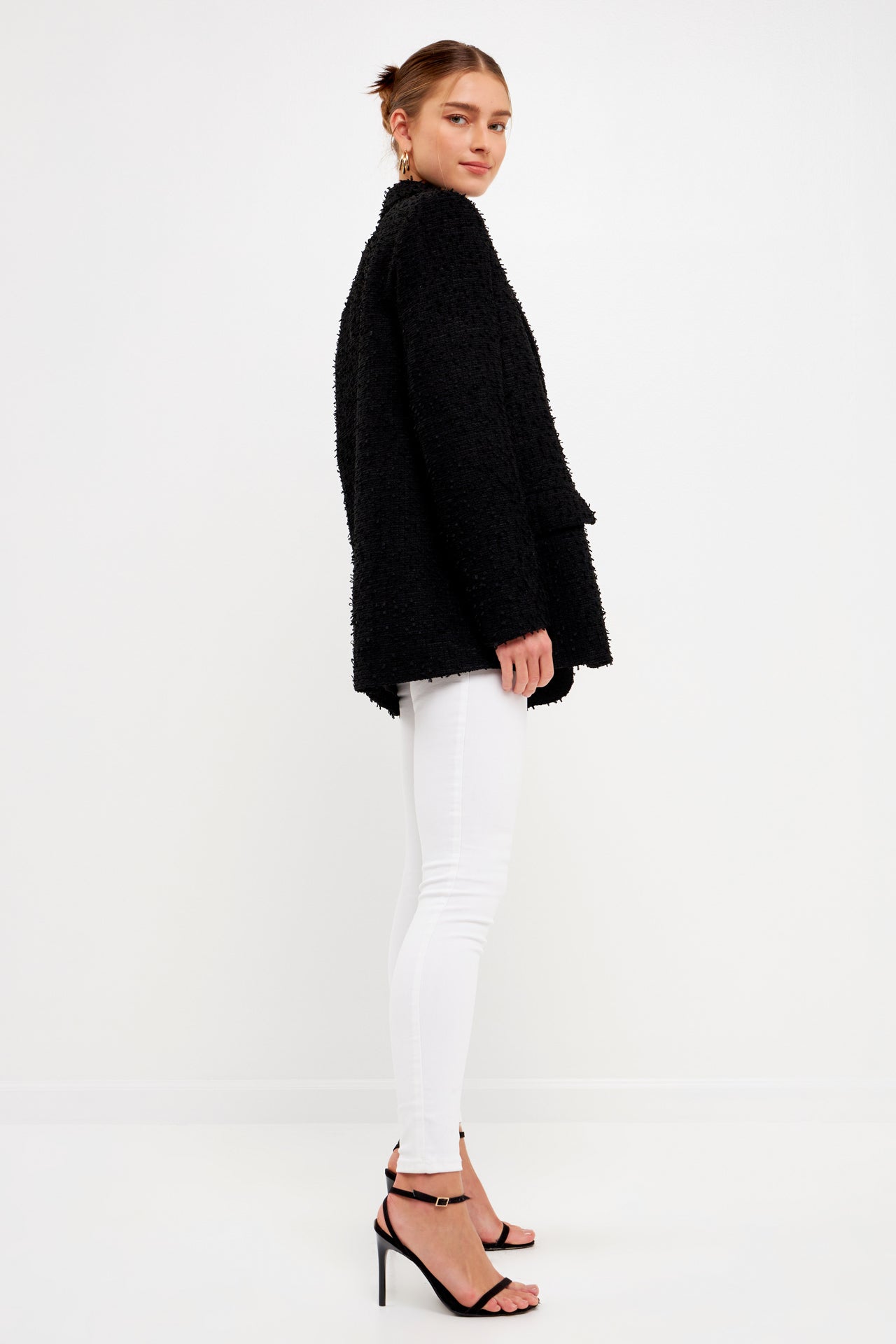 A blazer that you can wear to work and then to dinner with friends. This blazer from endless rose is just the right amount of sophistication and style. The tweed fabric, peak lapels, and front pockets give it a classic look, while the boyfriend fit offers a modern twist. Pair with the matching mini skirt and tights for the office, or wear it with jeans for a more casual look.