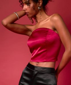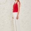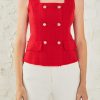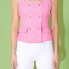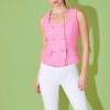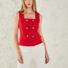 Endless Rose Women’s Tweed Fringed Double Button Top | Red|pink