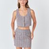 This chic mini tweed skirt is perfect for everyday wear! Crafted from grid tweed fabric with a fitted silhouette it features a unique front pocket with button detail for added style. The perfect combination of fashion and function the mini length makes it versatile and easy to style. Enjoy the sophisticated look of this skirt – head turning style and comfort you’ll love!
