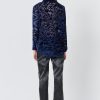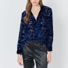Endless Rose Women’s Velvet Burnout Collared Top | Navy