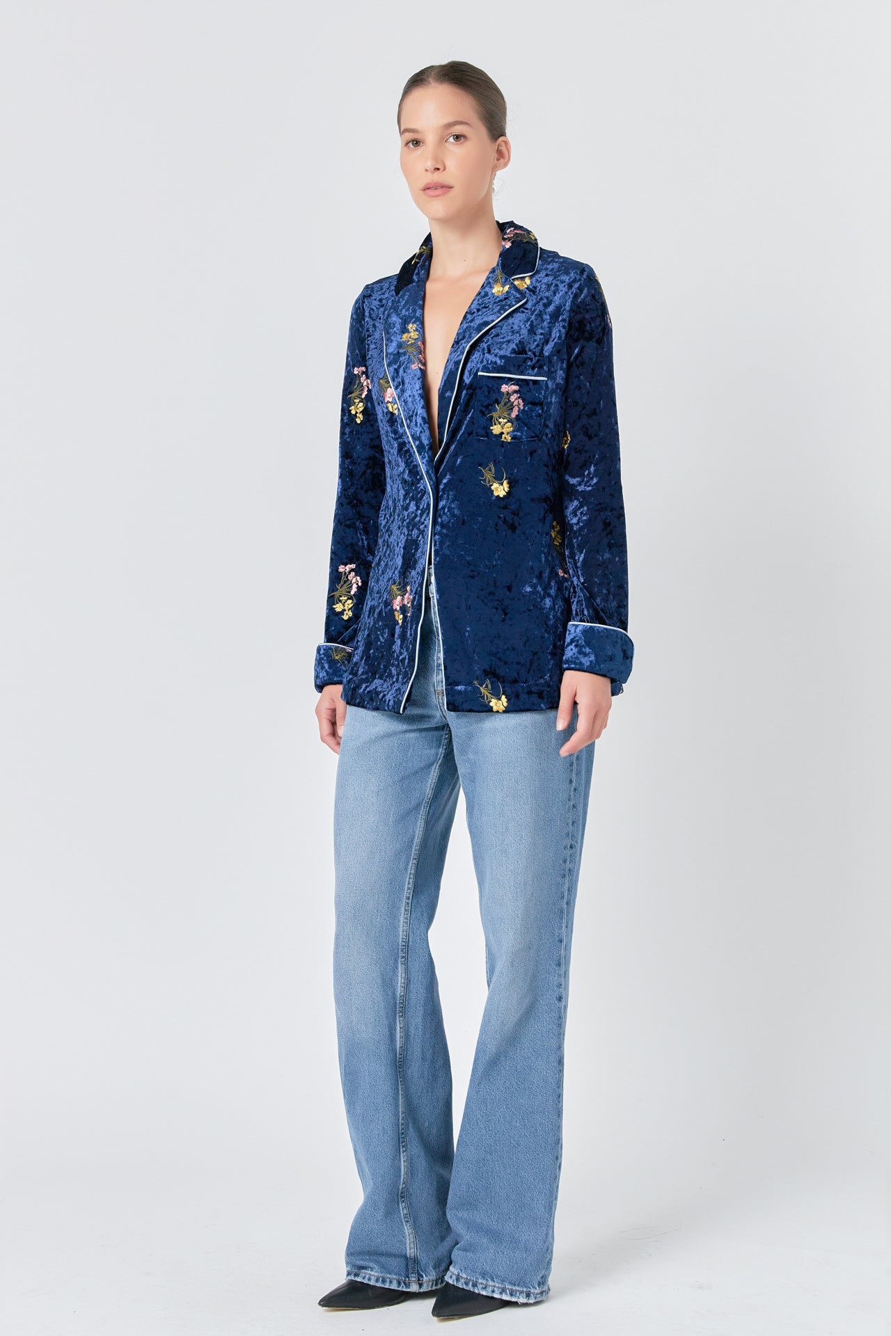 Endless Rose Women’s Velvet Pajama Jacket | Navy