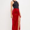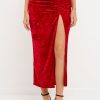 Look effortlessly chic in this stylish Velvet Ruched Maxi Skirt. Crafted from high-quality velvet material this skirt features ruched detail a front slit with sheer enchantment and a maxi length to give you an elegant silhouette. Not just perfect to wear for special occasions but also cozy enough for your everyday look. Enhance your wardrobe with this dreamy essential. Shop the Velvet Ruched Maxi Skirt now!