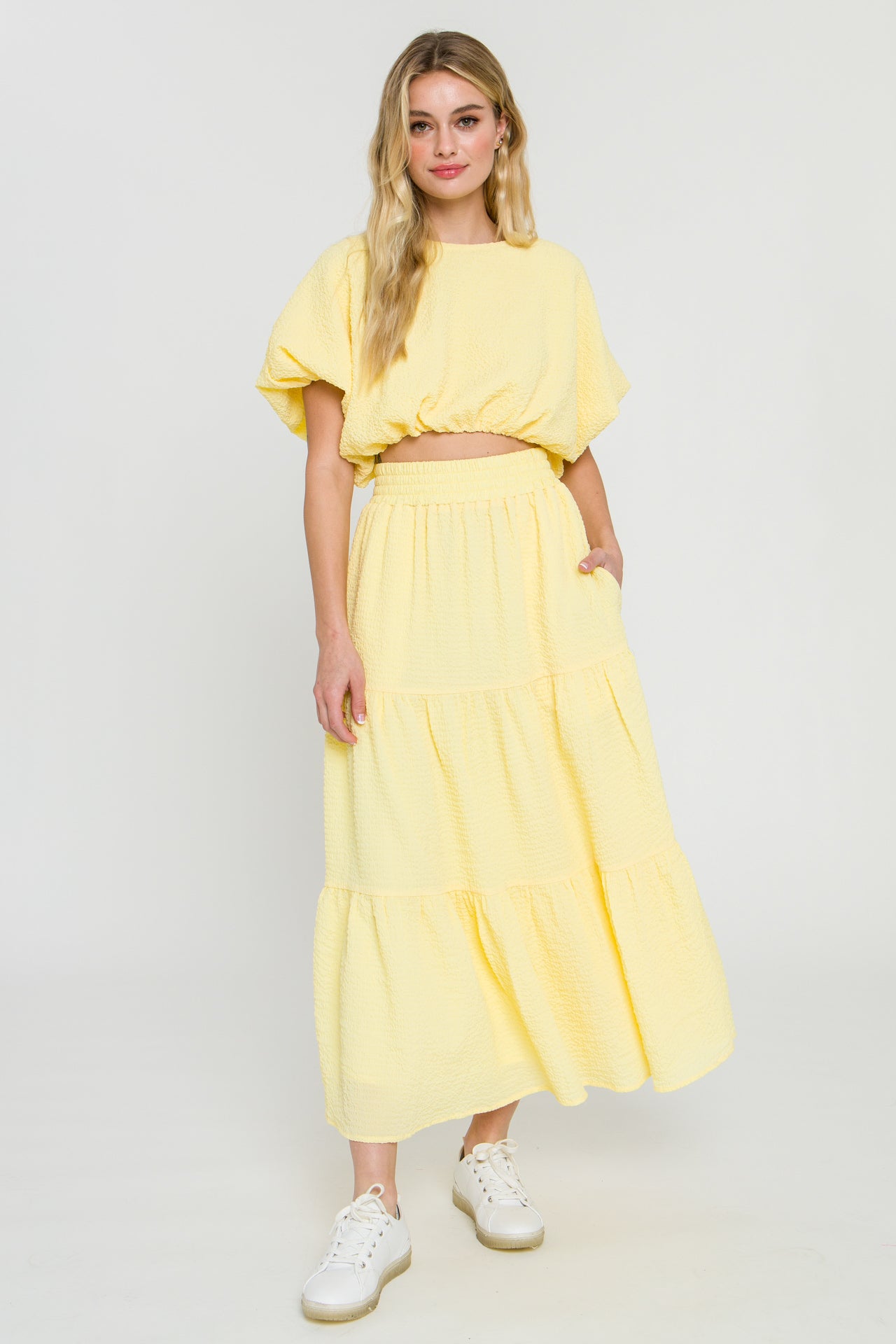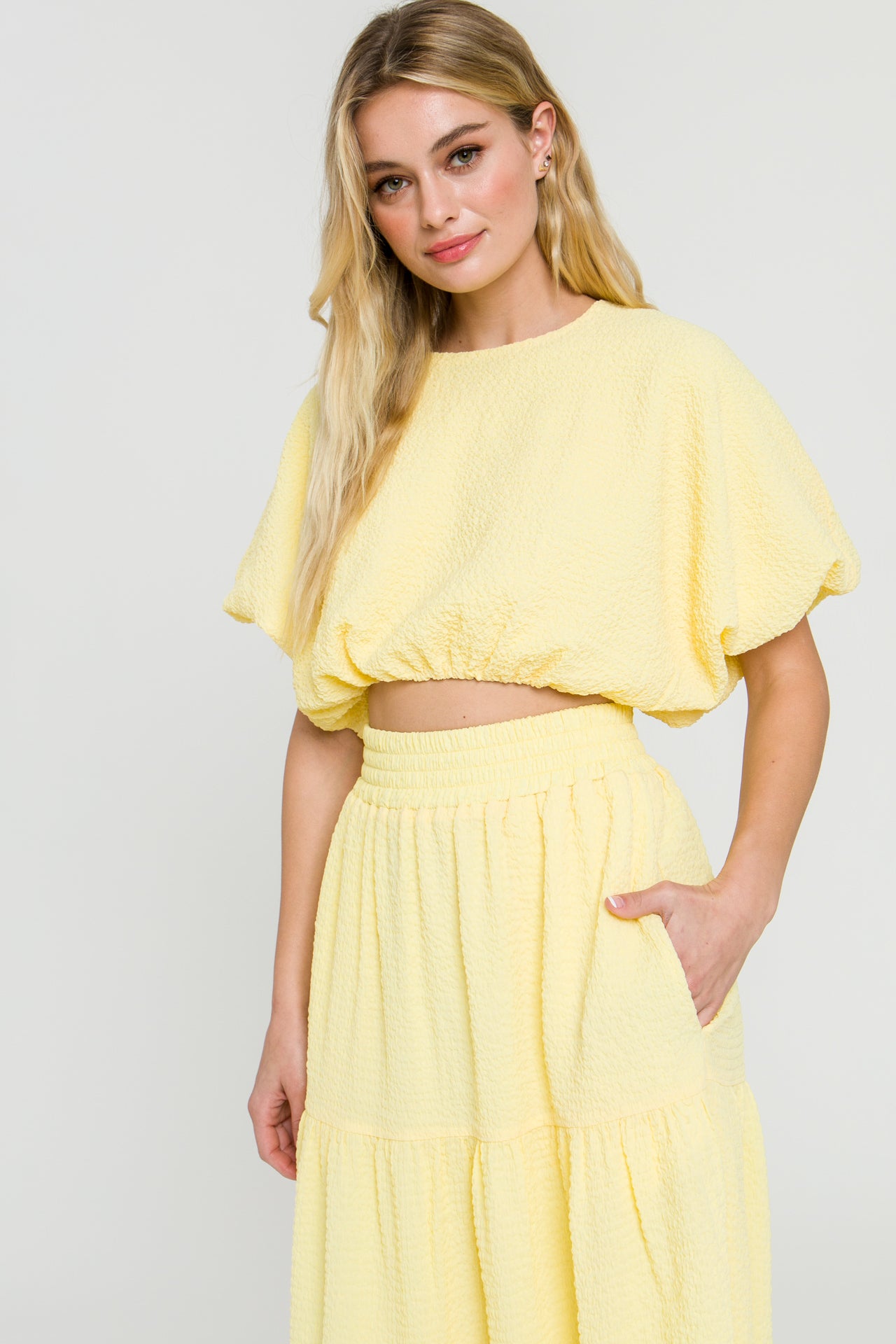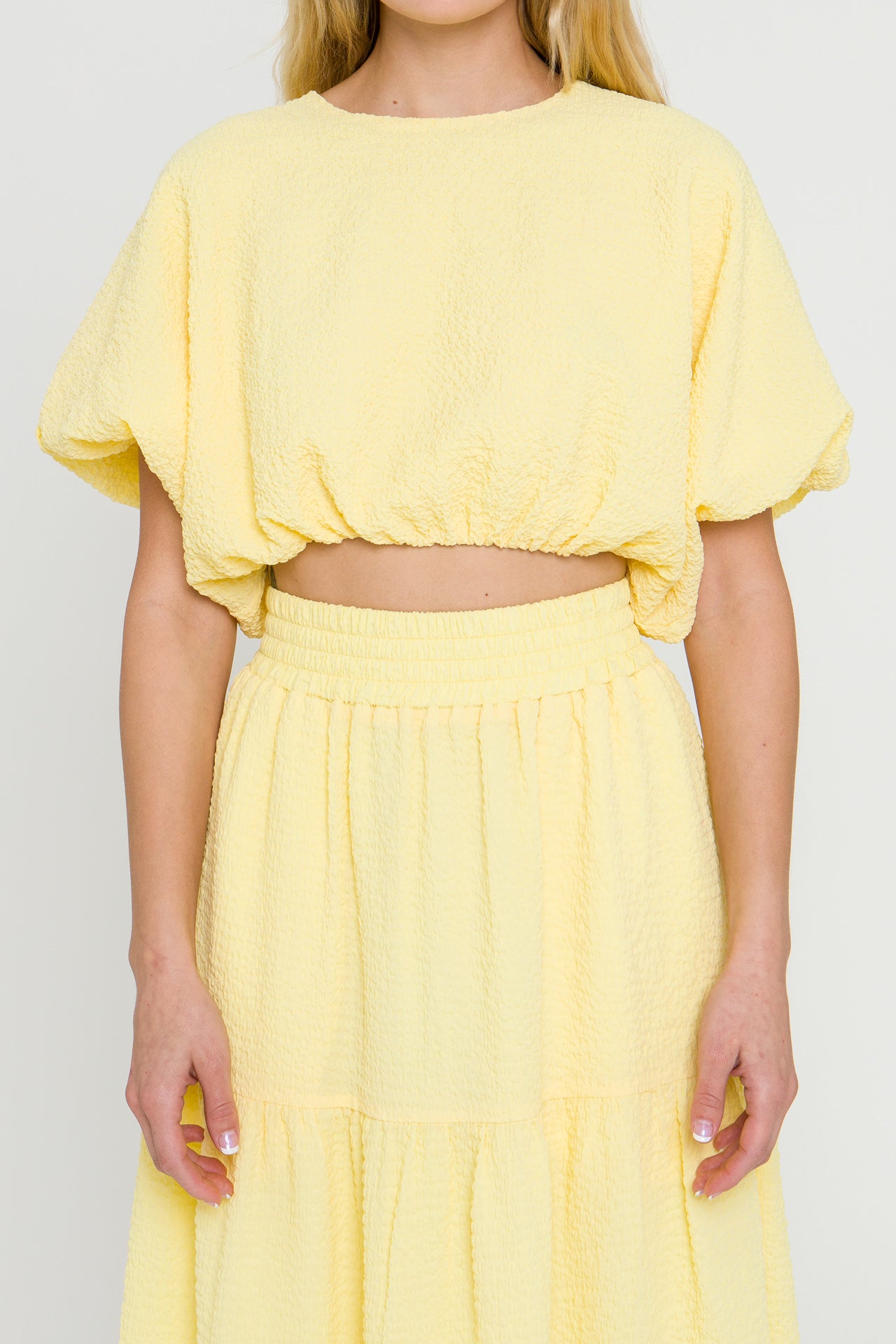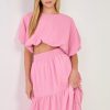 Endless Rose Women’s Voluminous Textured Cropped Top | Pink|yellow