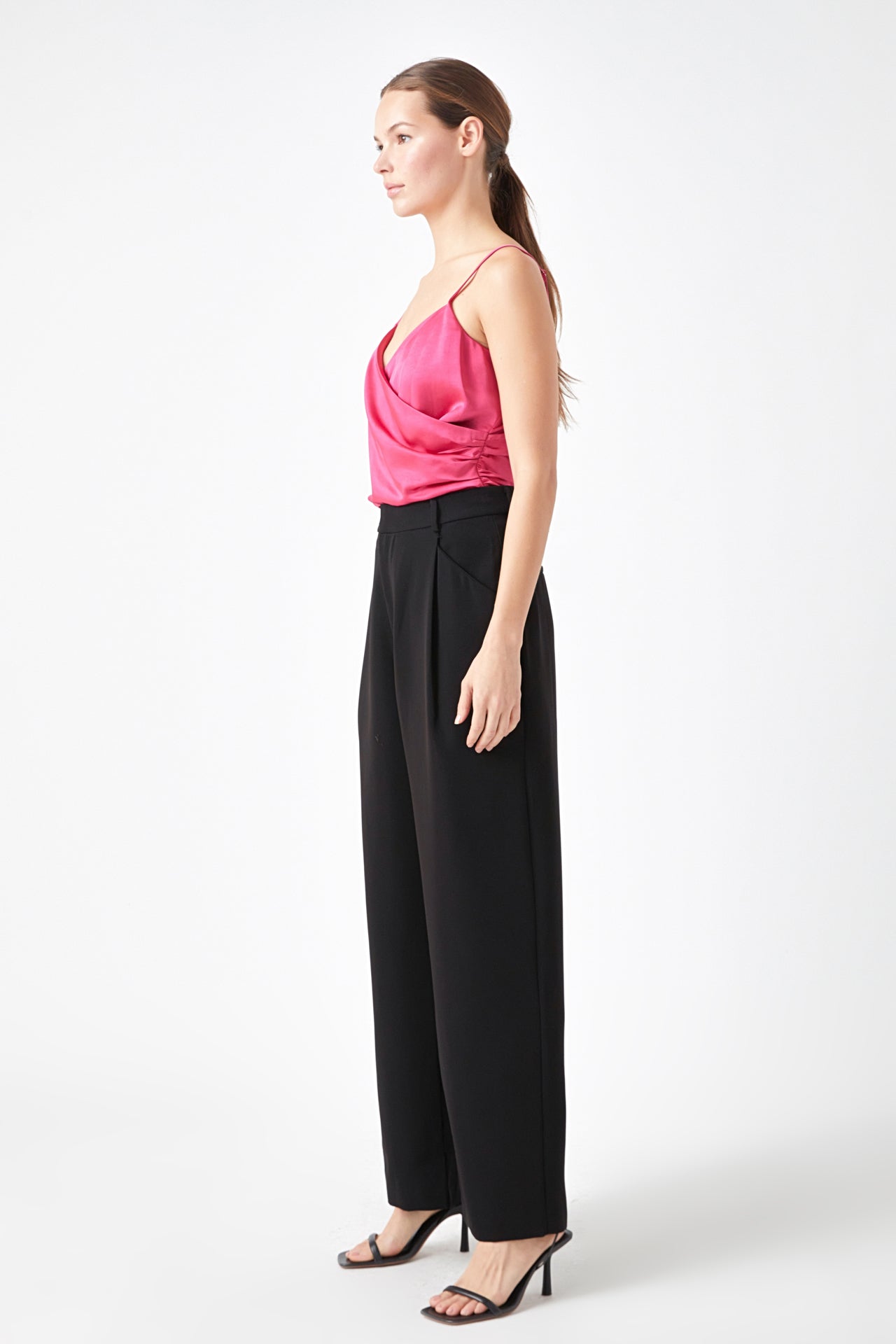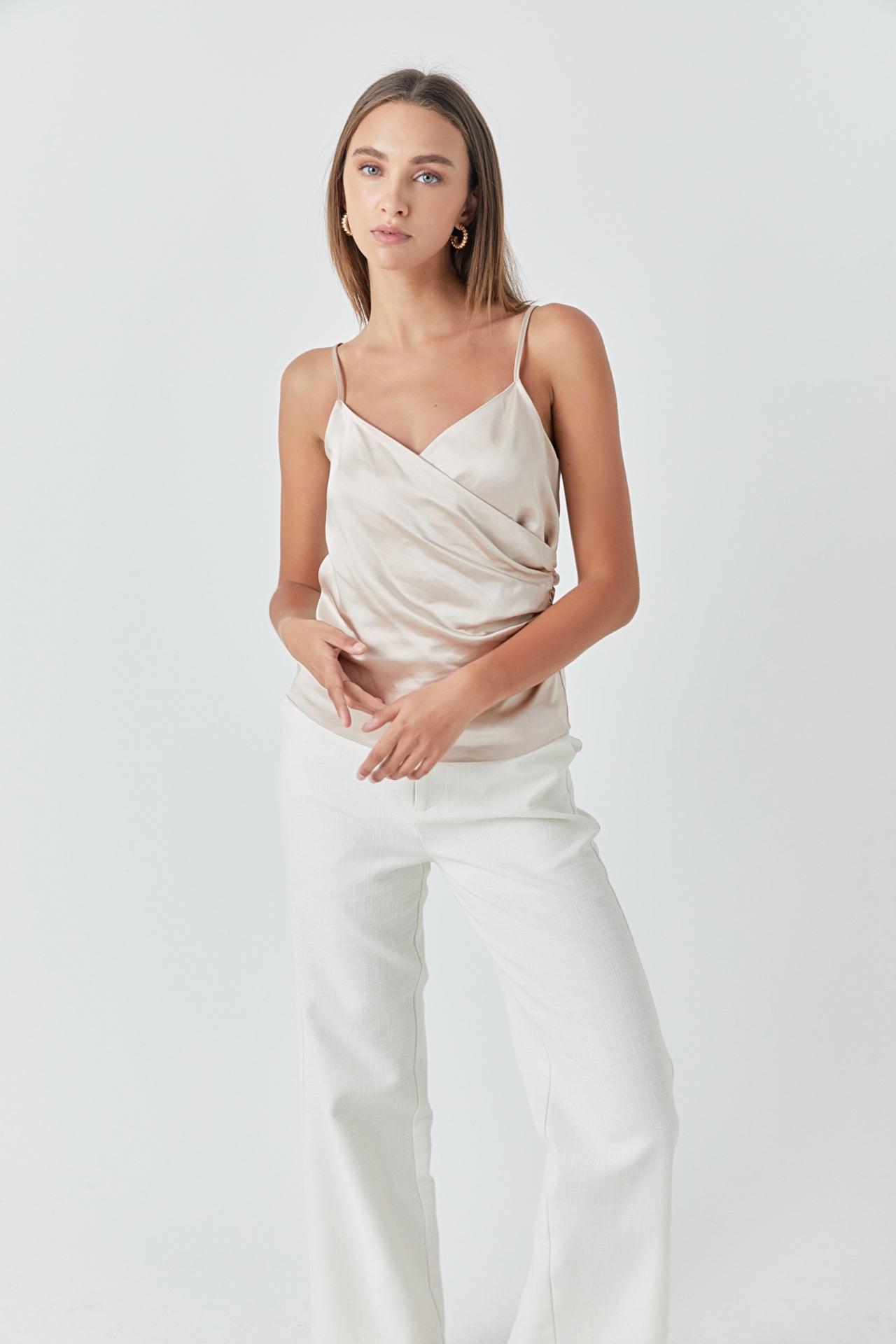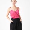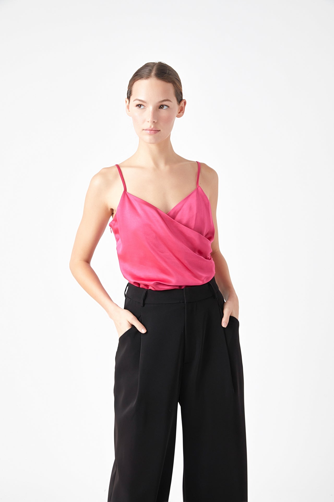 Endless Rose Women’s Wrap Over Satin Camisole | Beige|fuchsia
