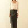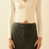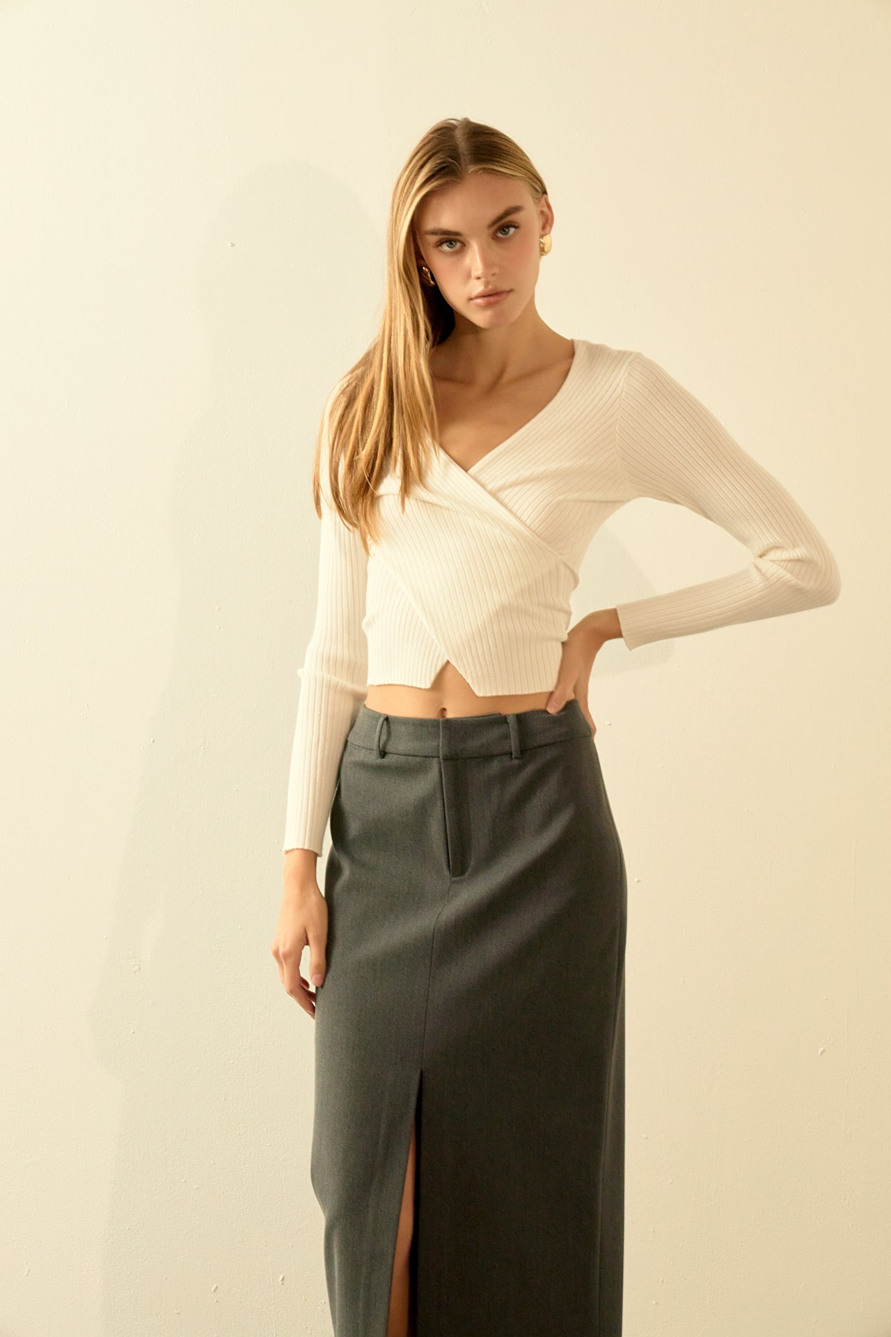 The perfect top to throw on without a second thought. The neckline is detailed with a double row of wrapped knit. This sweater is so easy to style and the fitted look will make you look amazing.