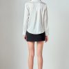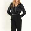 Introducing our Wrapped Satin Blouse a timeless piece for any wardrobe. With a V-neckline wrapped detailing and long sleeves with cuffs it’s a perfect blend of comfort and style. It features a sophisticated collared neckline adding elegance to any look. This versatile blouse is perfect for day or night and can be dressed up or down. Crafted from lightweight satin it’s sure to become a go-to piece in any wardrobe. Discover your perfect style with the Wrapped Satin Blouse.
